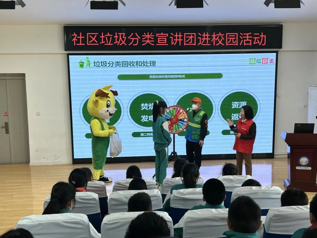 活動(dòng)開(kāi)始前,工作人員為學(xué)校的孩子們分發(fā)了垃圾分類(lèi)宣傳彩頁(yè),并結(jié)合PPT以及垃圾分類(lèi)宣傳彩頁(yè),通過(guò)風(fēng)趣幽默的講解,讓同學(xué)們?cè)谛β曋辛私馐裁词抢诸?lèi)、垃圾分類(lèi)的現(xiàn)狀、垃圾分類(lèi)的意義、如何垃圾分類(lèi)、垃圾分類(lèi)誤區(qū)等內(nèi)容。宣傳講解員還重點(diǎn)講解了生活垃圾四分類(lèi)和生活垃圾類(lèi)別,梳理了垃圾分類(lèi)的標(biāo)準(zhǔn),解答大家的疑惑。孩子們熱情高漲,活動(dòng)現(xiàn)場(chǎng)氣氛十分活躍。